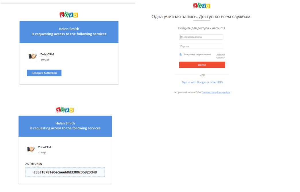 Wenn das Passwort für das Zoho-Konto im Browser gespeichert ist, wird der Token automatisch generiert; ist dies nicht der Fall, müssen Sie Ihren Benutzernamen und Ihr Passwort eingeben.