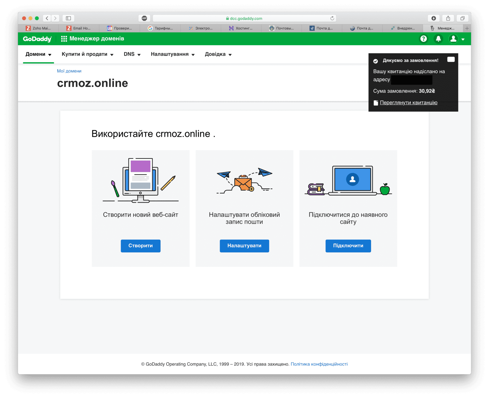 Nun können Sie mit der Konfiguration der Domain beginnen, um die Unternehmens-E-Mail für die Domain mit ZohoMail zu verknüpfenoder beispielsweise eine Website einzurichten, die mit Zoho Sites oder einem anderen Tool erstellt wurde.