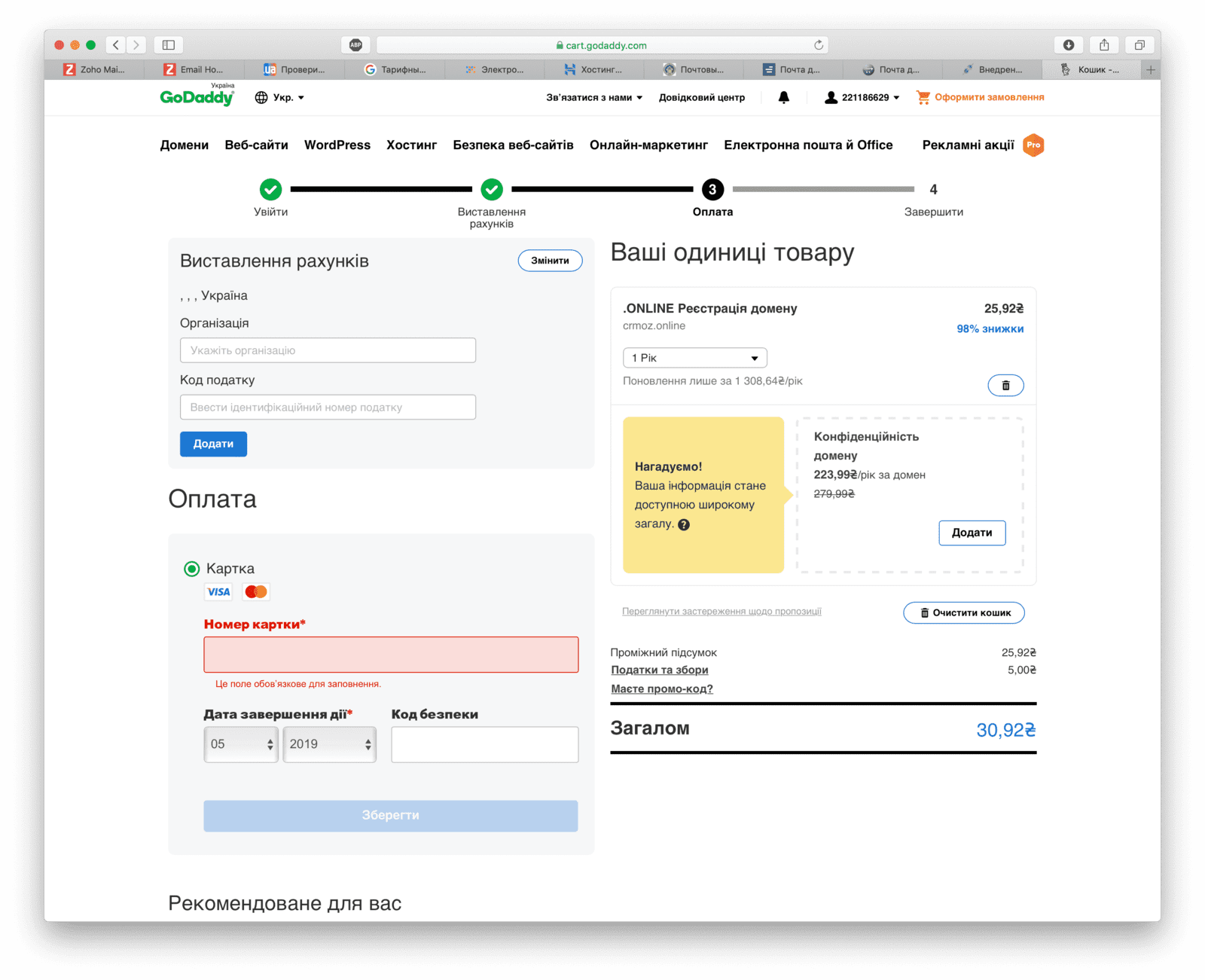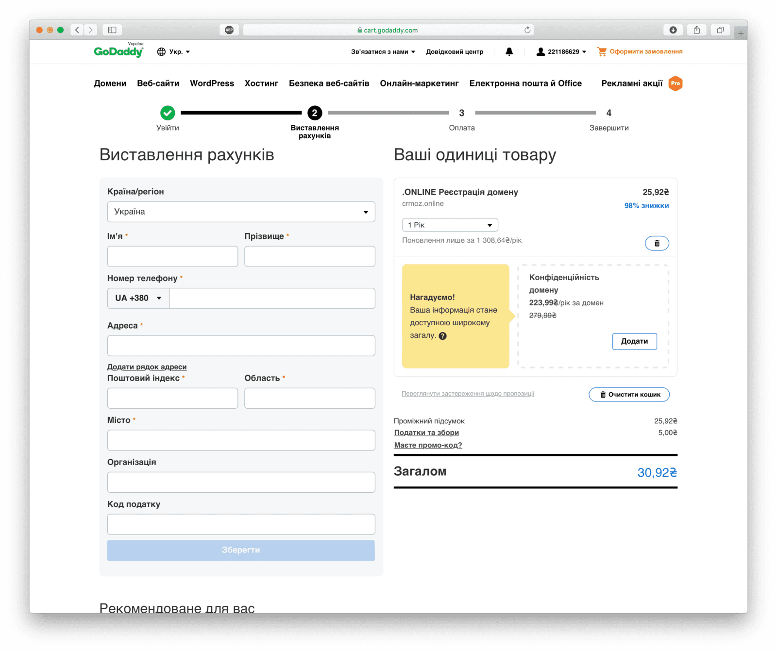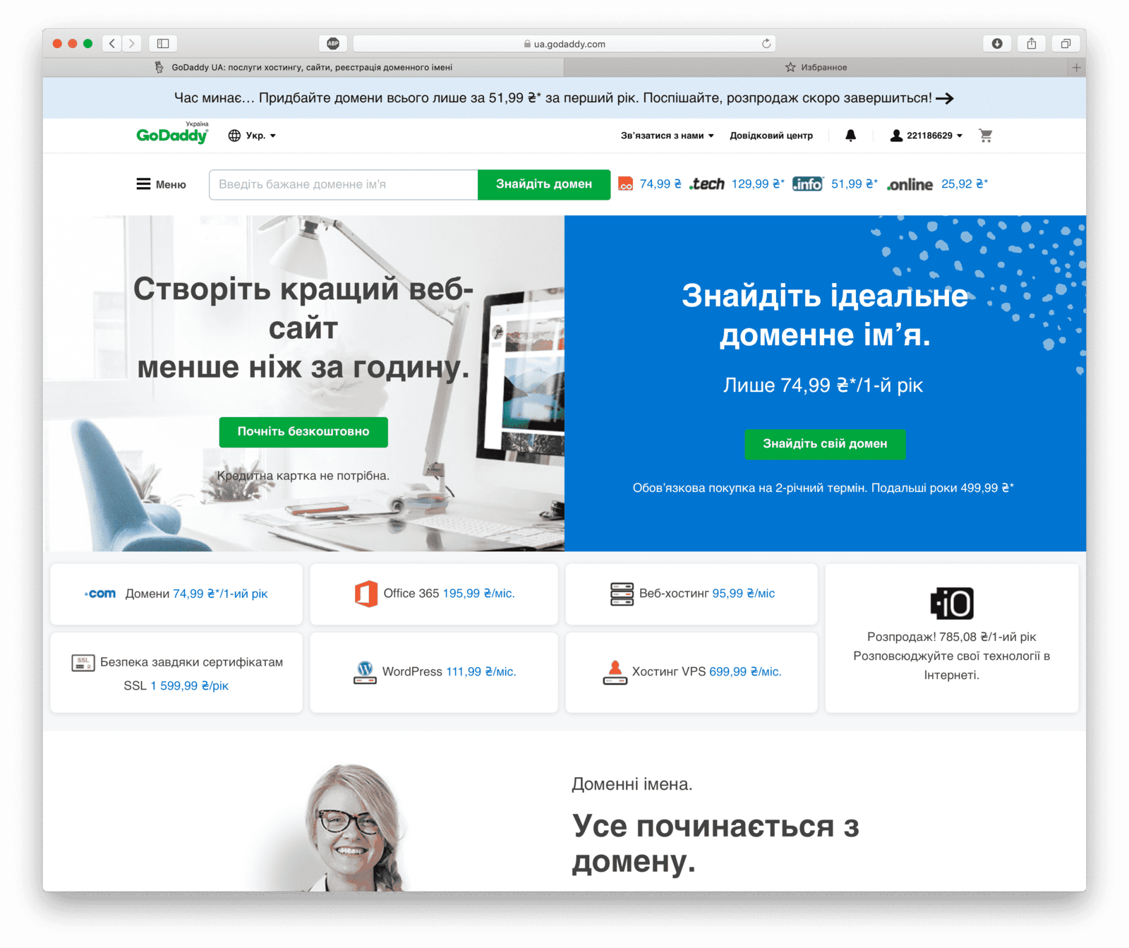 Der Domain-Registrar GoDaddy ist auf internationaler Ebene bekannter, daher werden wir den Kauf einer Domain am Beispiel dieses Dienstes erläutern.