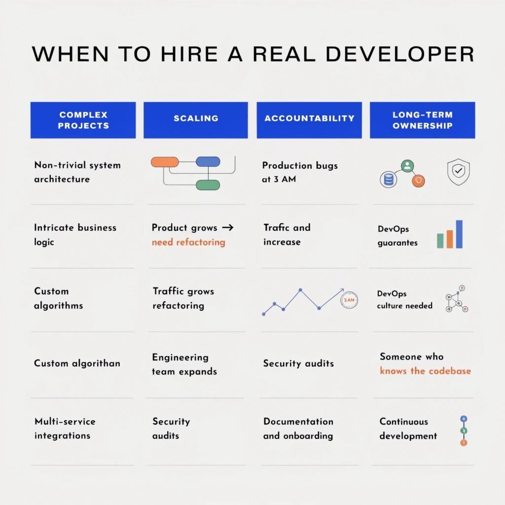 AI leistungsstark, aber nicht unbegrenzt. Es gibt Situationen, in denen ein menschlicher Entwickler wirklich unersetzlich ist: