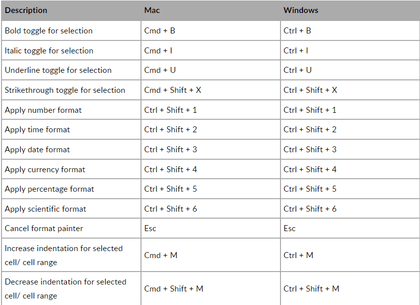 - Auf dem Bildschirm wird eine Liste der vordefinierten Tastenkombinationen mit den entsprechenden Beschreibungen angezeigt