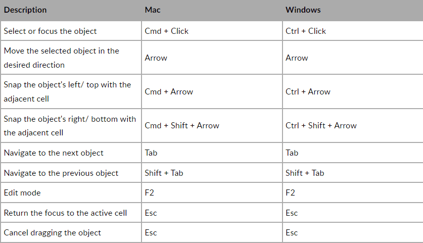 Shortcuts für Objekte (Schaltflächen, Bilder, Diagramme usw.)
