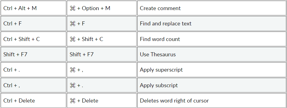 Die folgende Tabelle enthält die Tastenkombinationen bzw. Shortcut-Codes zum Erstellen von Zufallstext, Listen, Tabellen, Code-Schnipseln und Ähnlichem in Ihrem Dokument.