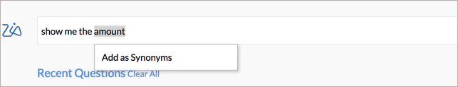 Jetzt können Sie unbekannte слова Ihrer Frage als Synonyme zu einer Spalte in Ihren Tabellen hinzufügen. Durch das Einrichten von Synonymen wird der Wortschatz von Ask Zia erweitert, damit Fragen beantwortet werden können.