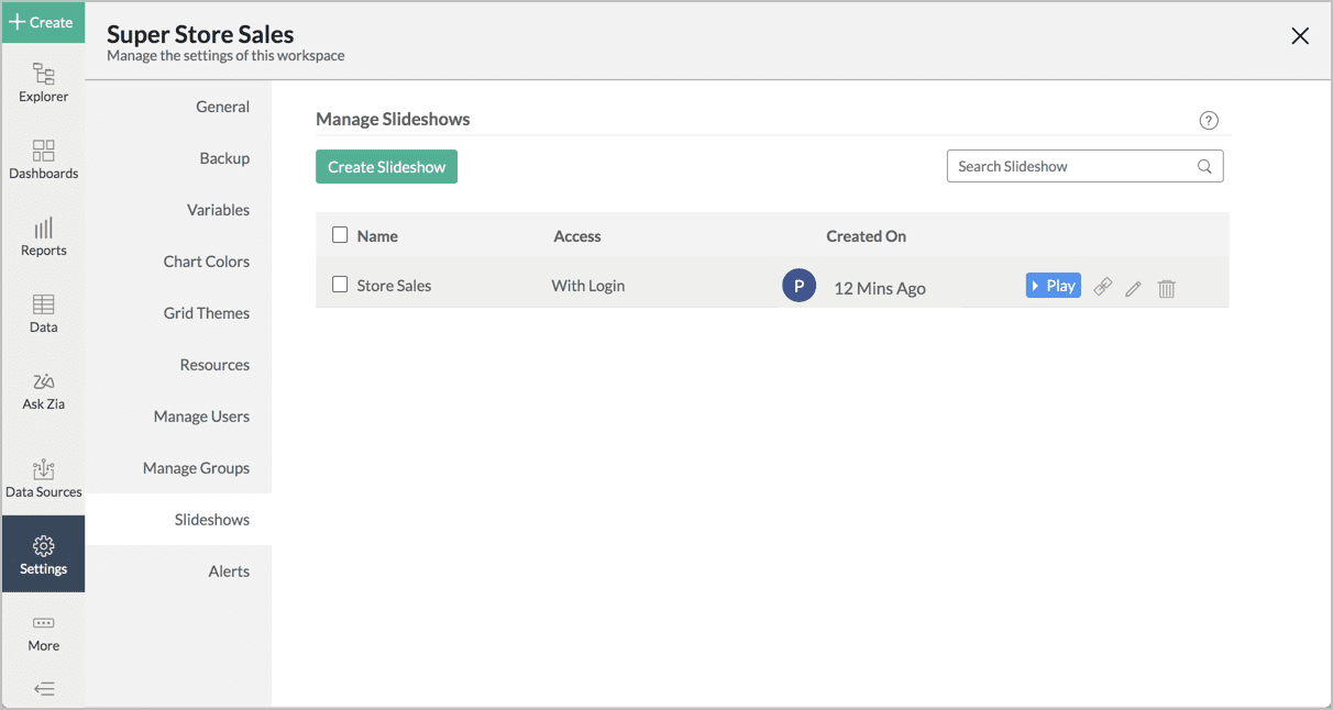 Die Seiten „Diashow erstellen“ und „Diashow verwalten“ wurden aktualisiert und um weitere interaktive Optionen erweitert.