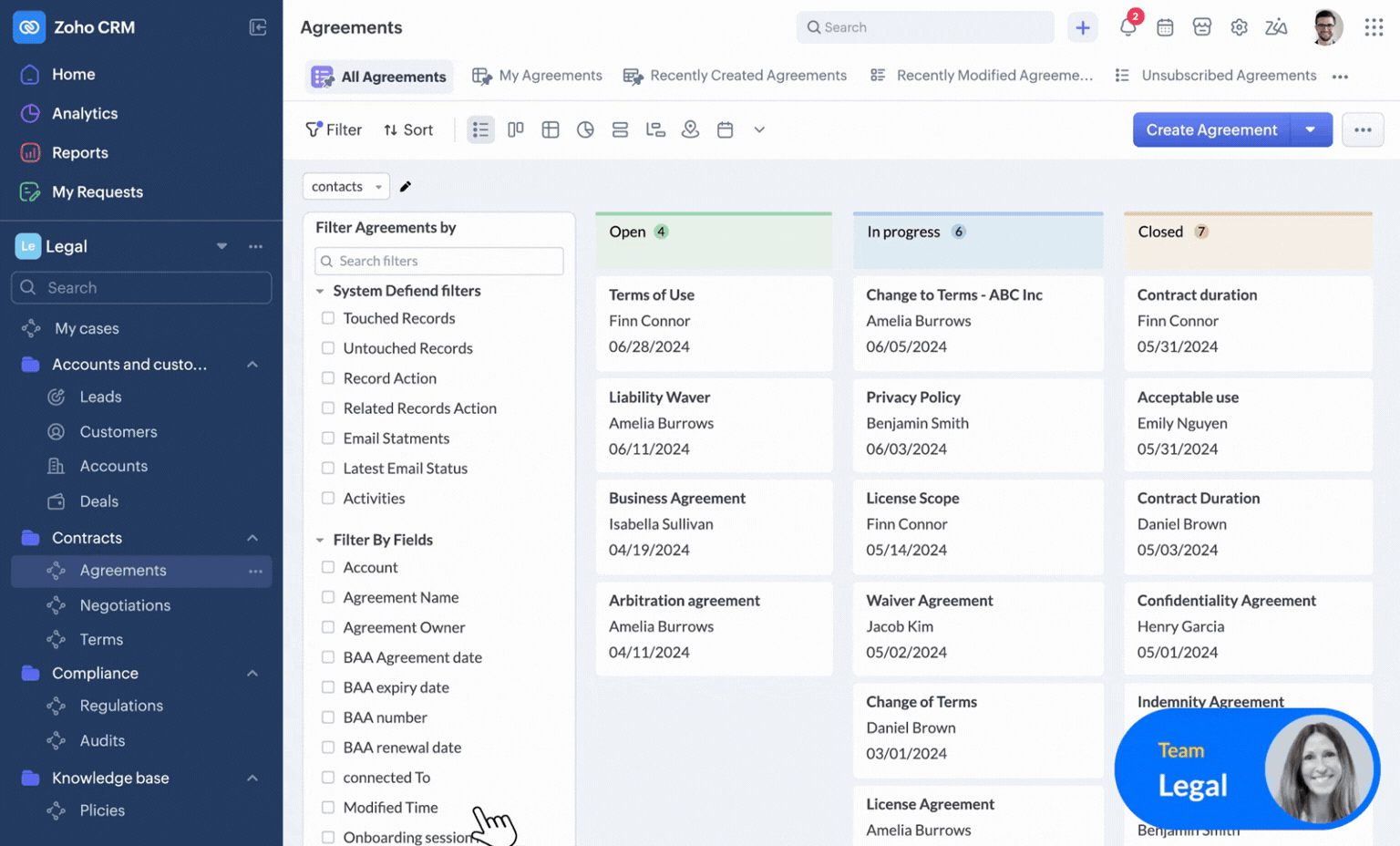 Ein Marketingmitarbeiter möchte wissen, wie viele Leads aus einer bestimmten Kampagne die Phase „Verhandlung“ erreicht haben. Ein Vertriebsleiter möchte seine Pipeline für die kommende Woche einsehen. Zoho CRM diese Berichte automatisch – manuelle Tabellenkalkulationen sind nicht erforderlich.