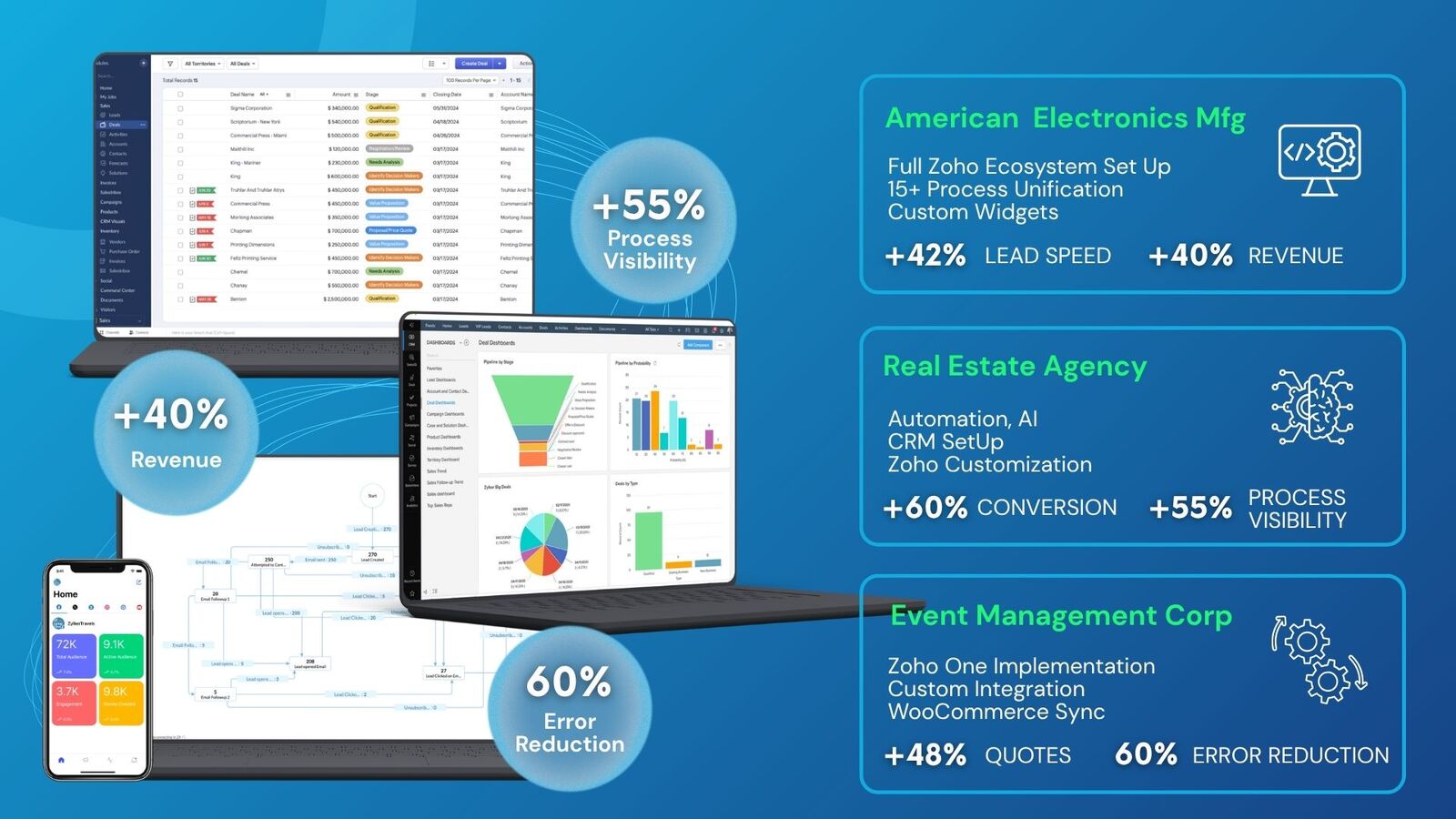 Die AutomatisierungCRM löst genau dieses Problem. Und Zoho CRM eines der leistungsstärksten Tools, um dies zu erreichen – ohne einen einzigen Entwickler einstellen zu müssen.