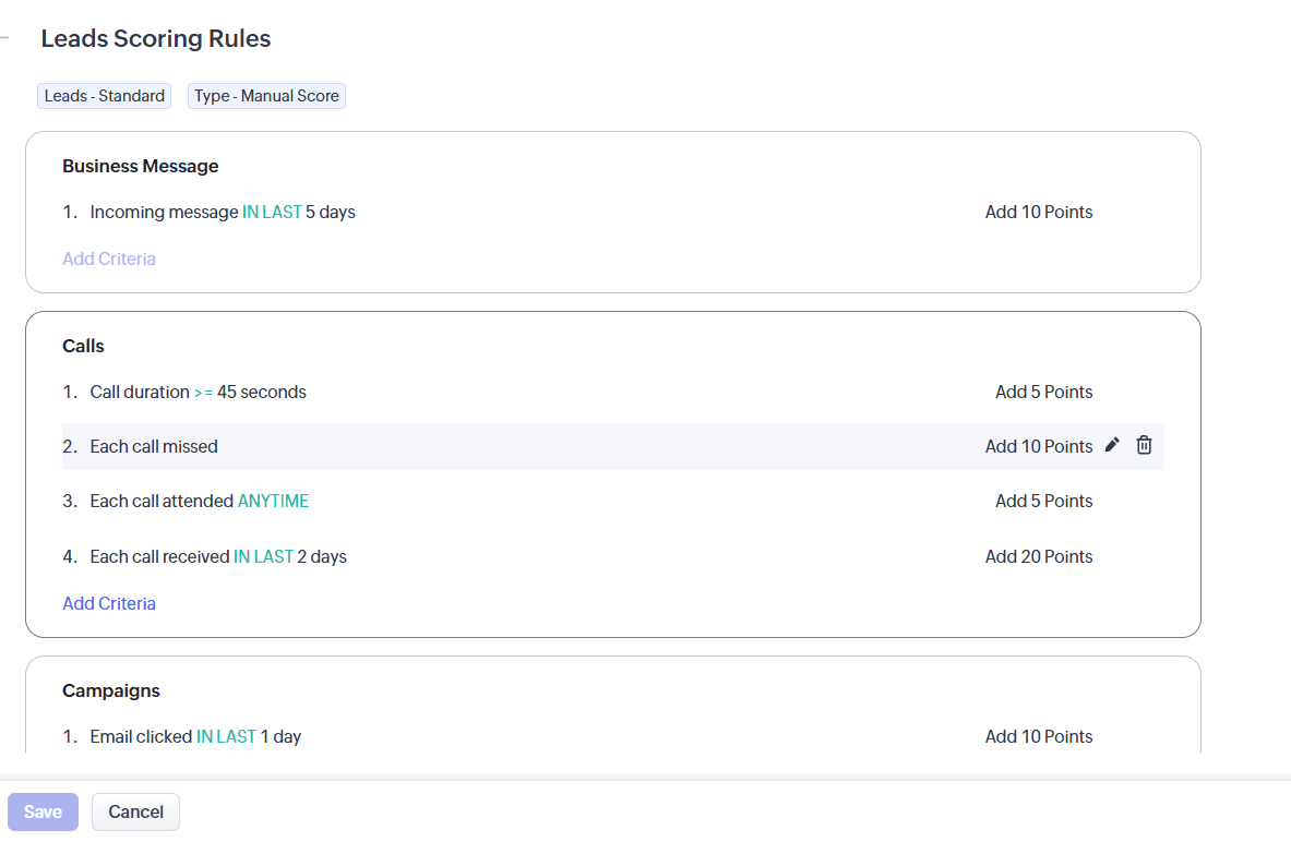 Zoho CRM bewertet jeden Lead CRM anhand der von Ihnen festgelegten Kriterien: E-Mail geöffnet – plus Punkte, Website besucht – plus , Anruf beantwortet – plus . Manager sehen, wer gerade „heiß“ ist, und konzentrieren ihre Energie darauf – anstatt Zeit mit „kalten“ Kontakten zu verschwenden.