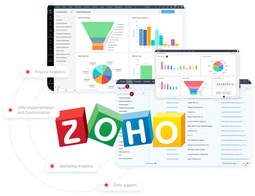 Zoho CRM eine Reihe von Tools für die effektive Interaktion mit potenziellen Kunden sowie Analysen und Berichte. Das vielseitige System unterstützt Unternehmen dabei, ihre Arbeitsabläufe zu optimieren und die Produktivität ihrer Mitarbeiter zu steigern.